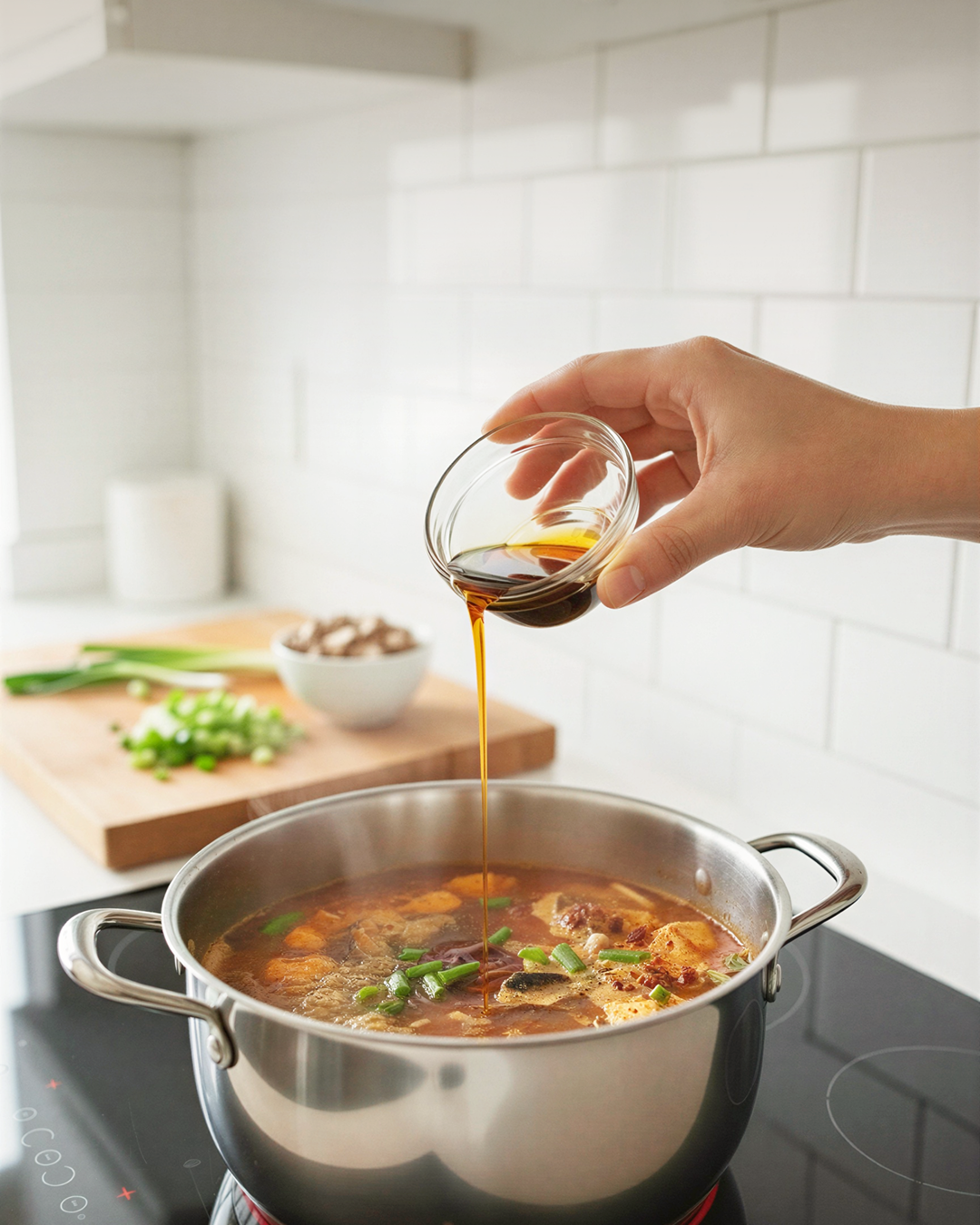 Adjust seasoning — add more soy sauce or sesame oil to taste.